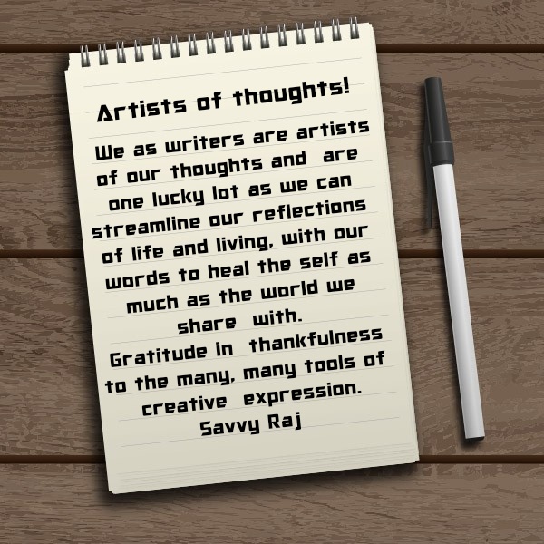 For all artists, thoughts are the treaure troves of creative enterprise, to choose those from which to create from, are also thoughts that help pick tools for the infinite paths of expression.